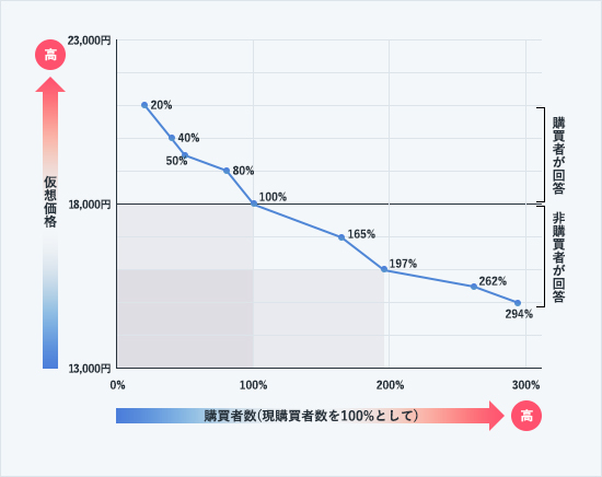 (注) 仮想需要関数を推定するための質問、購買心理と満足度に関する質問からなり、買った人と買わなかった人別に集計できるよう設計されています。