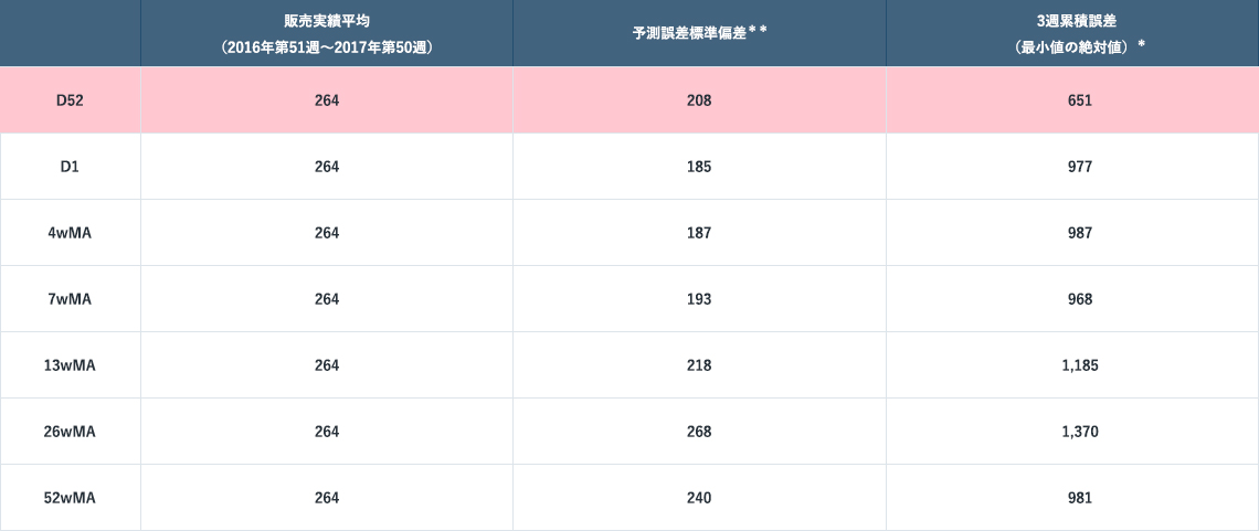 したがって、在庫が最小となる予測を求めるためには、WNが正確に計算された予測モデルとなっている必要があるのです。
