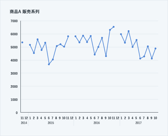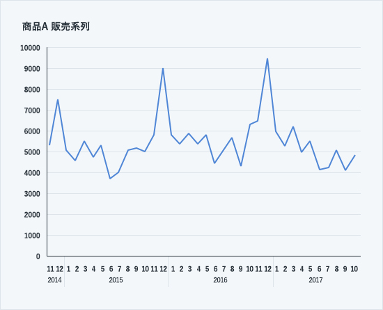 この会社では、商品Aの販売変動について、毎年11、12月は販売が急増するといったシーズン性があると見ていました。