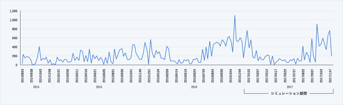 下図はリビング用品Bの週次販売実績データ